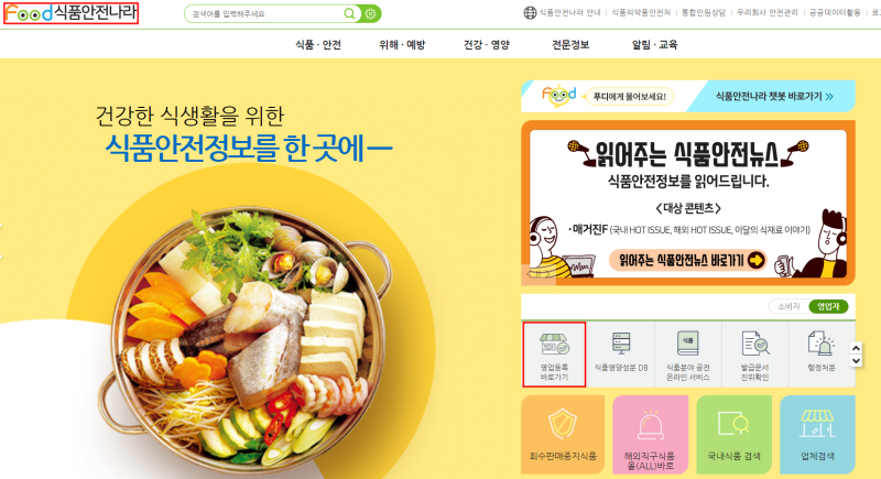 1. 식품안전나라 접속(www.foodsafetykorea.go.kr)