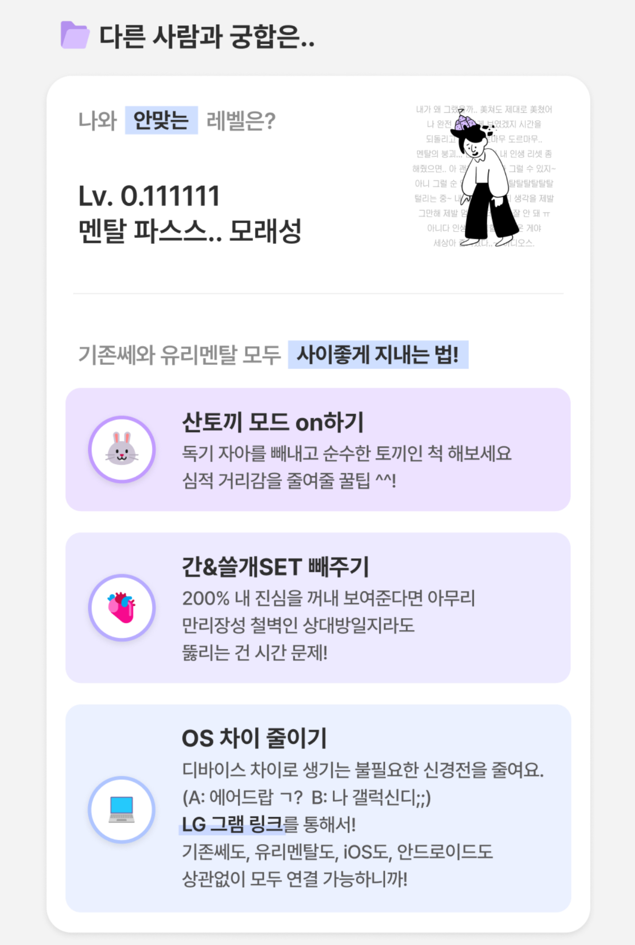 당신은 돌을 맞아도 버틸 멘탈로 눈막귀막 만렙 스킬을 가진 미친 회복 탄력성 소유자로 보입니다.
