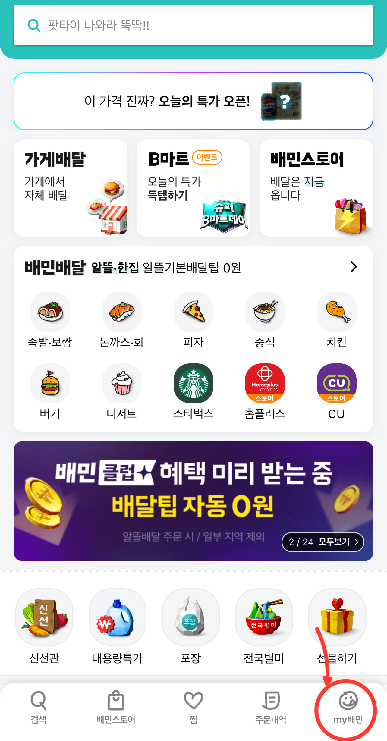 2. 하단에 my배민 클릭