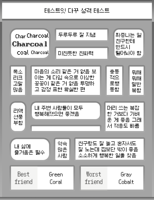 테스트잇이라는 재밌는 테스트가 올라오는 사이트에서 다꾸로 알아보는 성격 테스트가 나와서 여러분들께 소개드리려고 합니다.