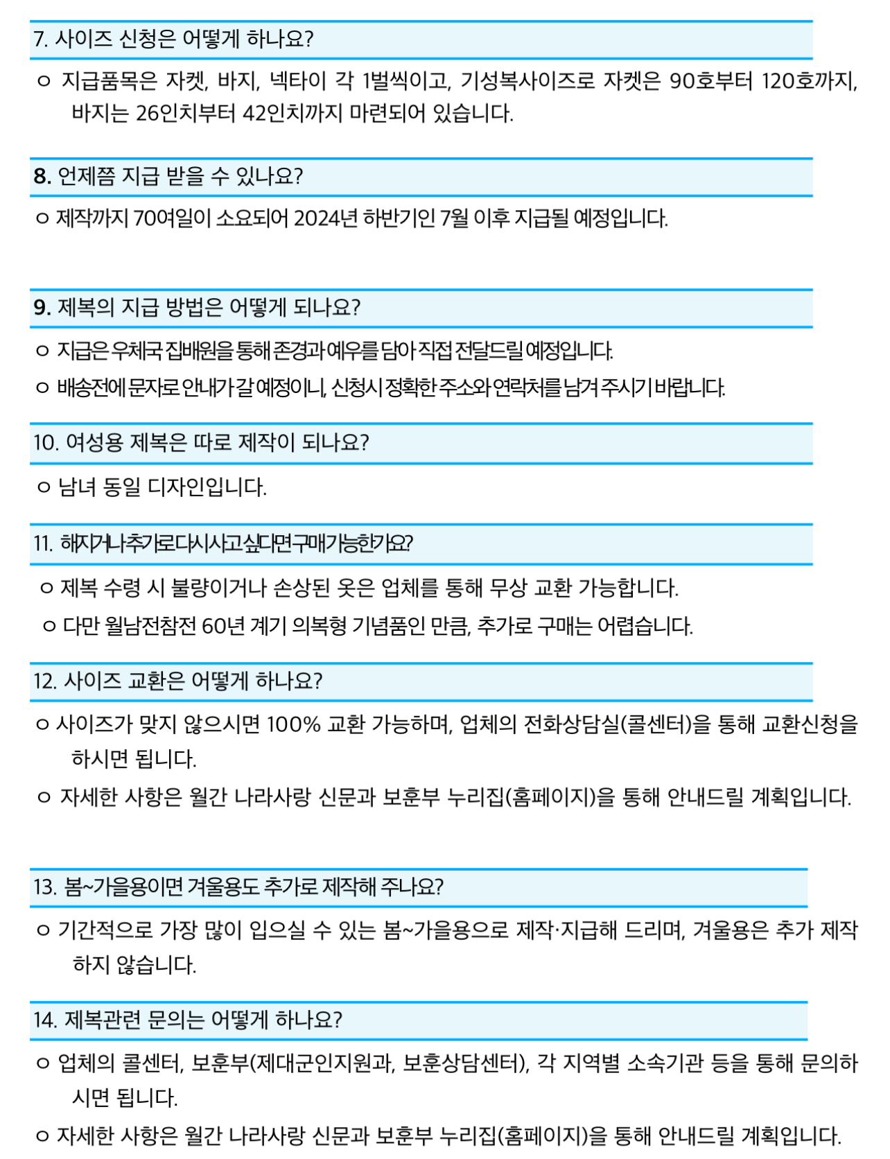 지난해 6·25참전유공자에 이어 월남 참전유공자에게 새로운 제복을 지급하는 사업에 대한 신청이 오는 2024년 5월 20일부터 시작된다고 합니다.