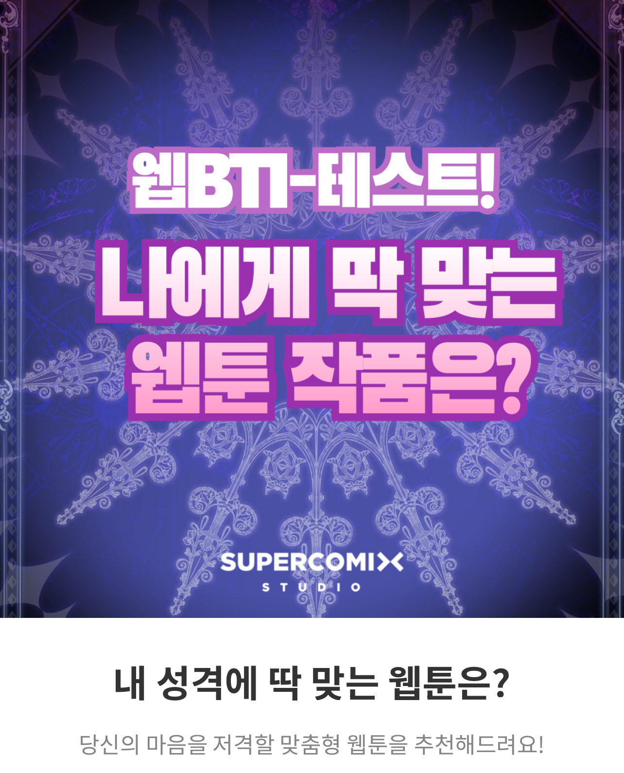 당신의 마음을 저격할 맞춤형 웹툰을 추천해주는 ‘웹BTI’가 있다는데 여러분들께 소개드리겠습니다.