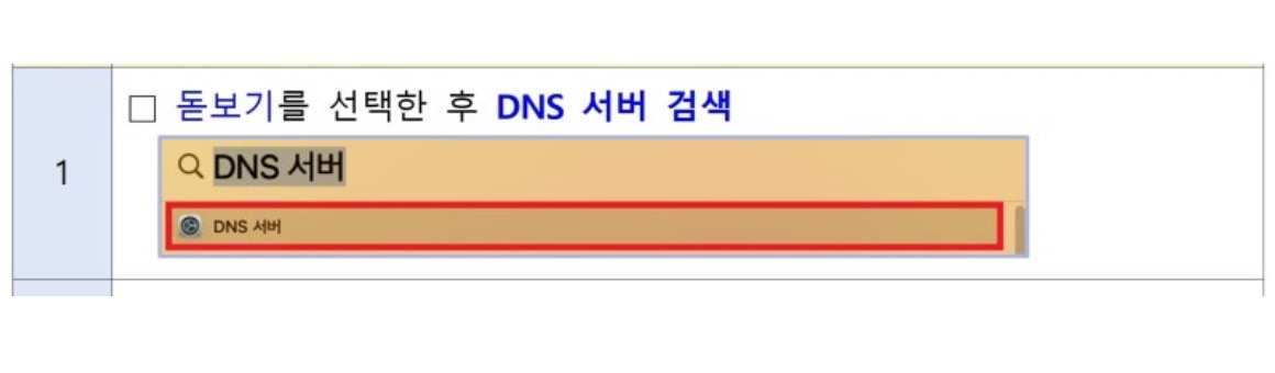 1. 돋보기를 선택한 후 DNS 서버 검색