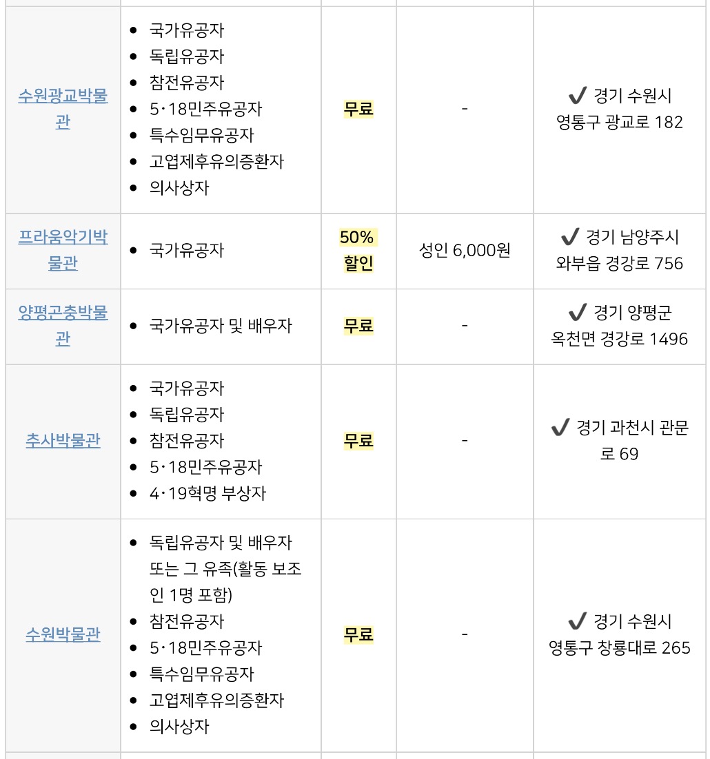 국가유공자와 보훈가족 등 여러분에게 다양한 할인 혜택을 드리는 박물관에 대해 정리해 드리겠습니다.