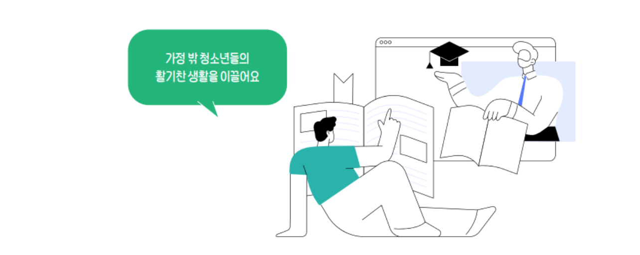 심신이 지친 청소년들에게 따뜻한 쉼을 제공하는가정 밖 청소년 지원 제도를 운영하는데 ‘가정 밖 청소년 학업 직업 문화여가 지원’에 대해서 소개드리겠습니다.