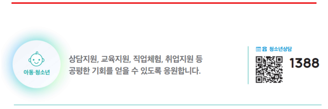 · 청소년전화 (☎1388, 휴대전화는 국번+1388, 사이버 1388 청소년상담센터)