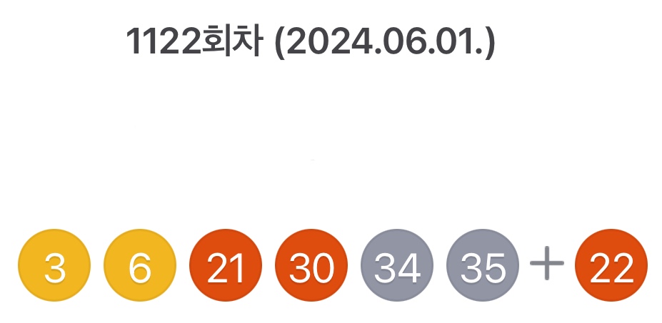 추첨한 1122회 로또 당첨번호 조회 결과 3,6,21,30,34,35번