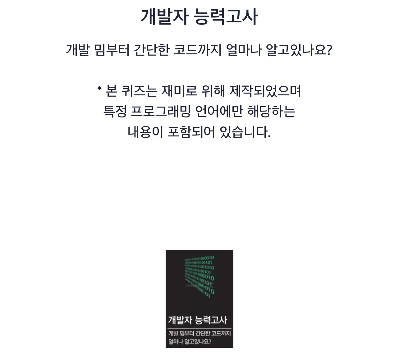 * 본 퀴즈는 재미로 위해 제작되었으며 특정 프로그래밍 언어에만 해당하는 내용이 포함되어 있습니다.
