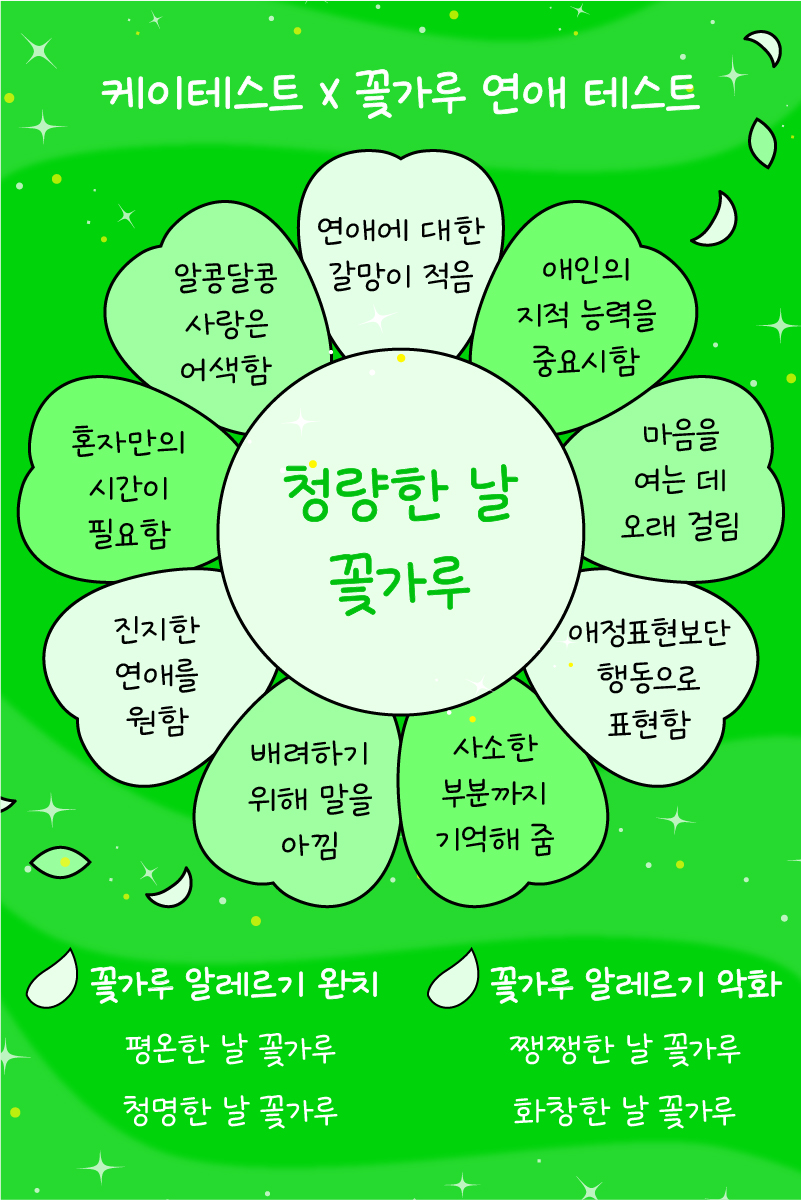 꽃가루로 보는 너의 연애 성격은 어떨지 알아보는 케이테스트에 나온 ‘꽃가루 연애 테스트’를 소개드리겠습니다.