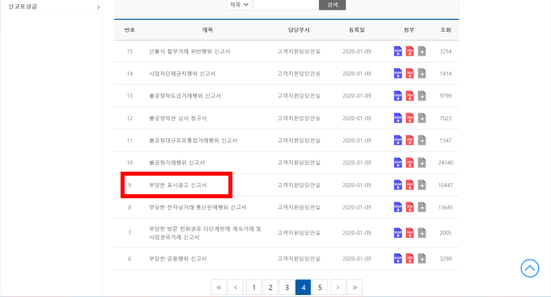 ➂9번 '부당한 표시광고 신고서' 내려받기