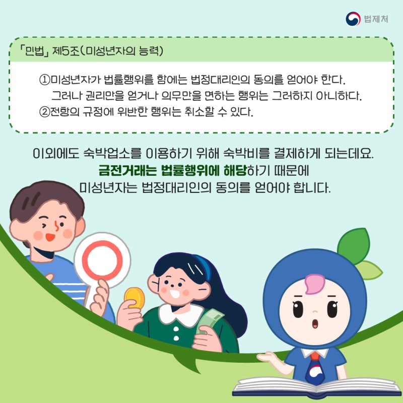 이외에도 숙박업소를 이용하기 위해 숙박비를 결제하게 되는데 금전거래는 법률행위에 해당하기 때문에 미성년자는 법정대리인의 동의를 얻어야 합니다.