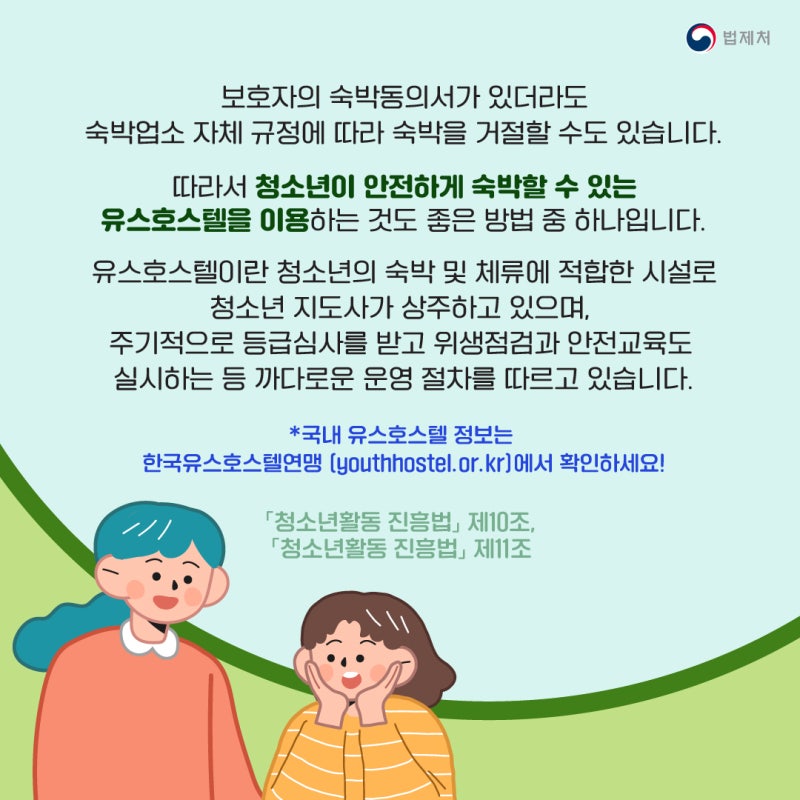 법제처에 따르면 청소년도 보호자의 숙박동의서가 있으면