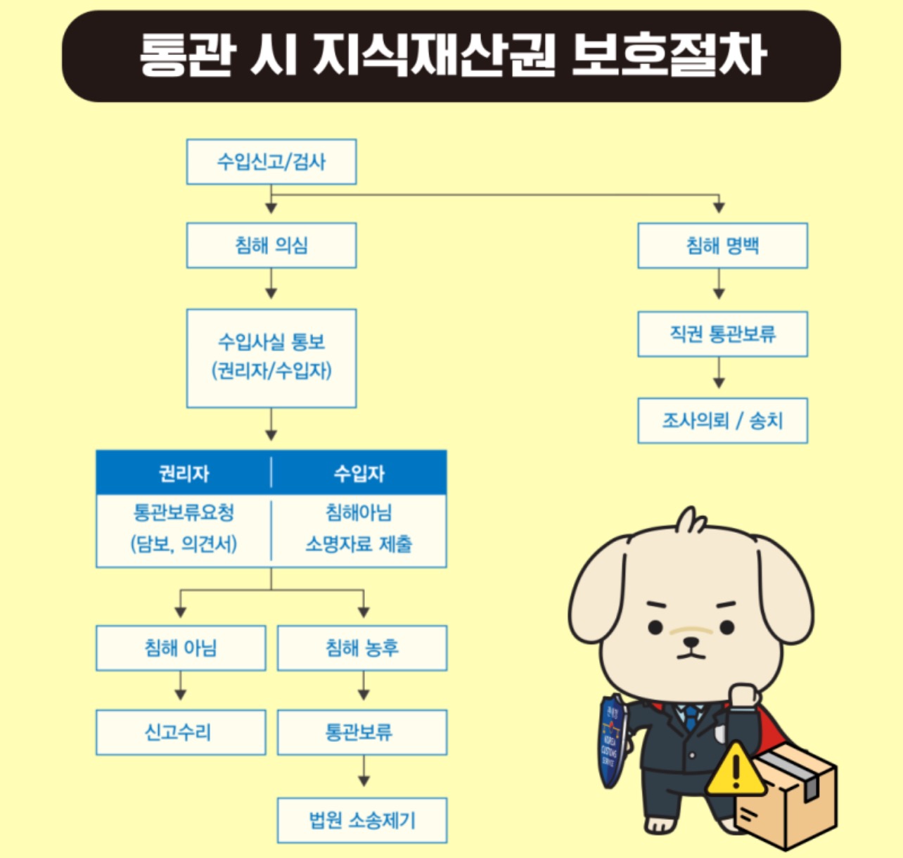 권리자가 지식재산권을 세관에 권리보호신고를 하면 수출입 통관 과정에서 발견되는 권리 침해물품에 대해 즉각 대응할 수 있다고 합니다.