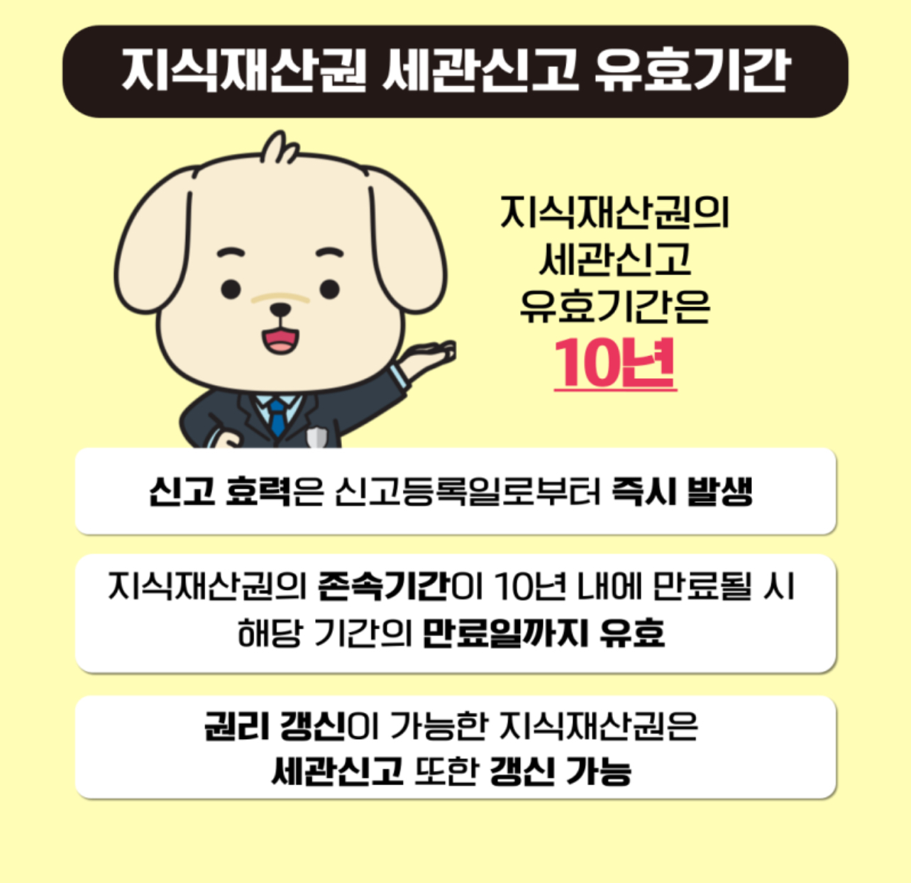 ✔️권리 갱신이 가능한 지식재산권은 세관신고 또한 갱신 가능