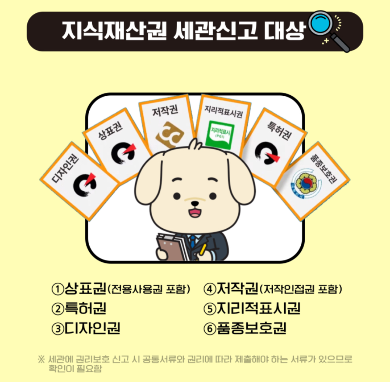 ※ 세관에 권리보호 신고 시 공통서류와 권리에 따라 제출해야 하는 서류가 있으므로 확인이 필요함