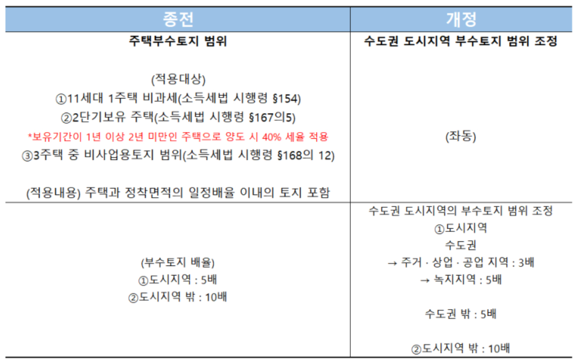 1세대 1주택 양도소득세 비과세 적용 대상의 부수토지 범위를 조정합니다.