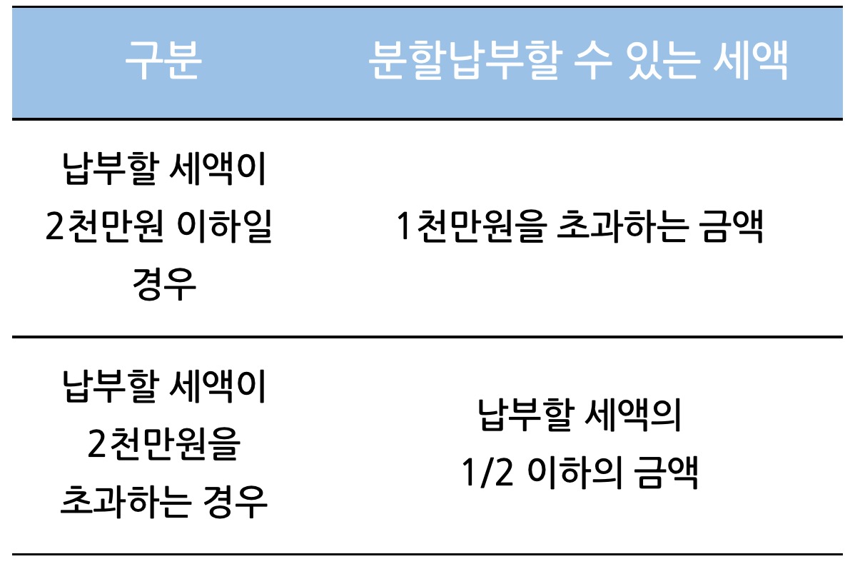 납부할 세액이 2천만원을 초과하는 경우 > 납부할 세액의 1/2 이하의 금액
