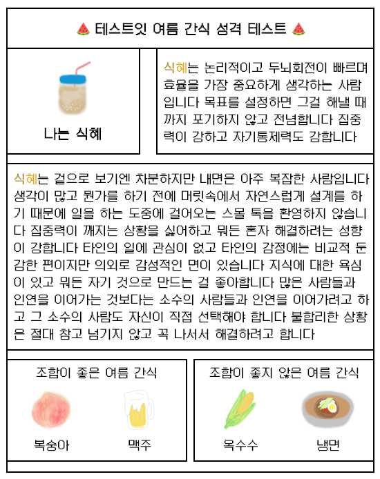 여름 간식 성격 테스트 mbti