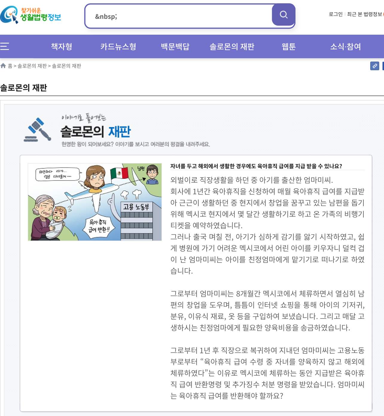 회사에 1년간 육아휴직을 신청하여 매월 육아휴직 급여를 지급받아 생활하던 중 해외에서 일하는 남편을 돕기 위해 아이는 조부모님께 맡긴 후 8개월 이상 해외에서 체류하며 양육비용을 송금한 사례가 있었다고 합니다.