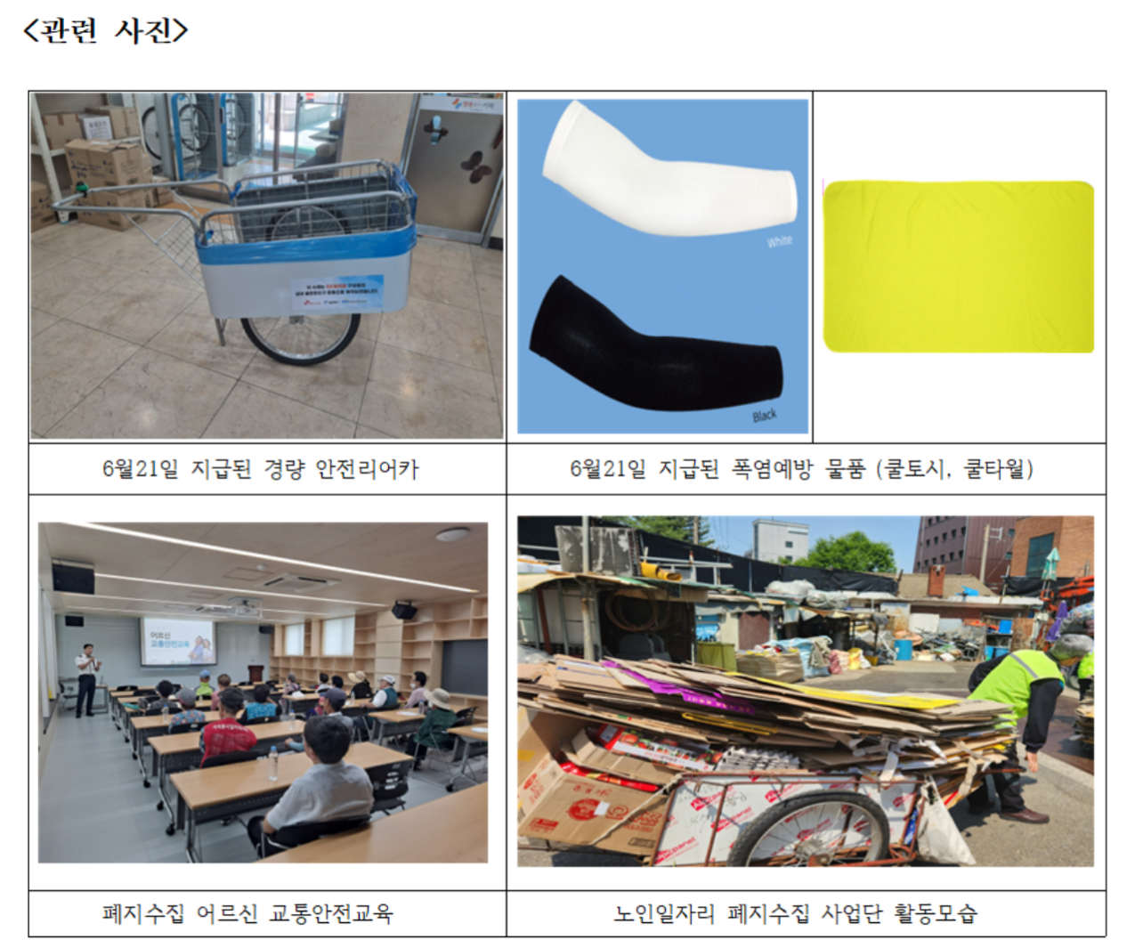 상대적으로 폐지수집 활동을 시작한 지 오래되지 않은 60대 어르신들에겐 복지시설도우미 같은 공공일자리나 도보 배달원 등 민간일자리를 연계해 적정 소득을 보장한다고 합니다.
