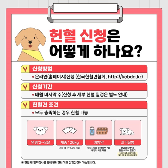 ※ 헌혈 전 혈액점사를 통해 반려견의 기초 건강검진이 가능합니다.