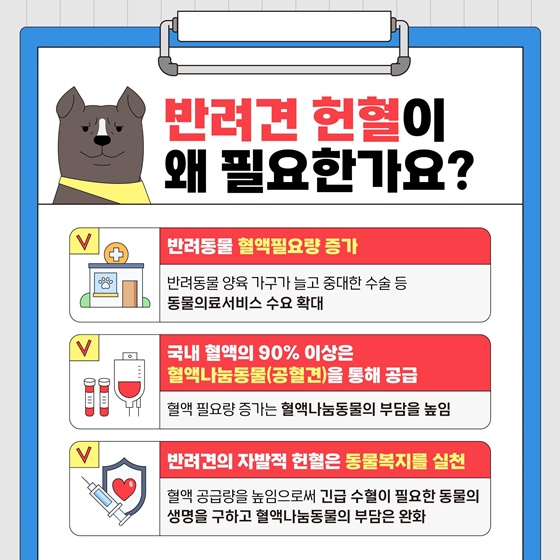 반려견의 국내 혈액 90% 이상은 혈액나눔동물(공혈견)을 통해 공급된다는 사실, 알고 계신가요?