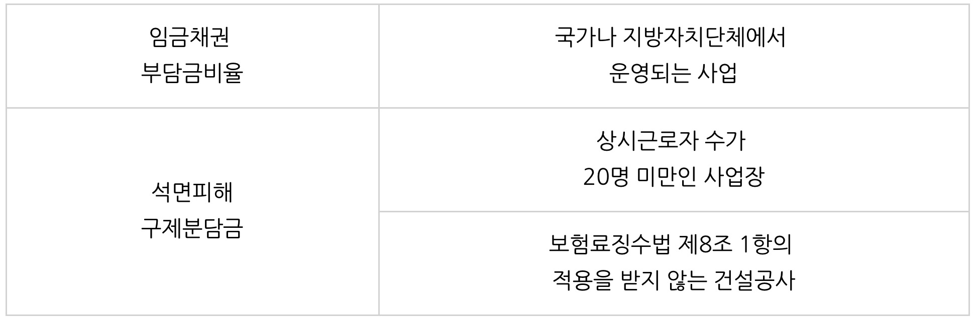 *임금채권부담금비율과 석면피해구제분담금은 다음과 같은 분들에게 적용되지 않습니다.