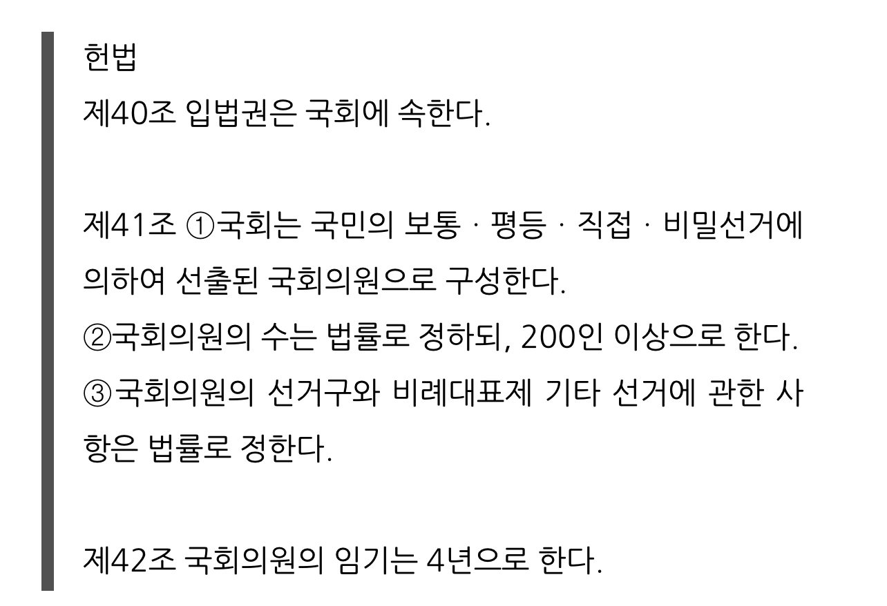 제40조 입법권은 국회에 속한다.