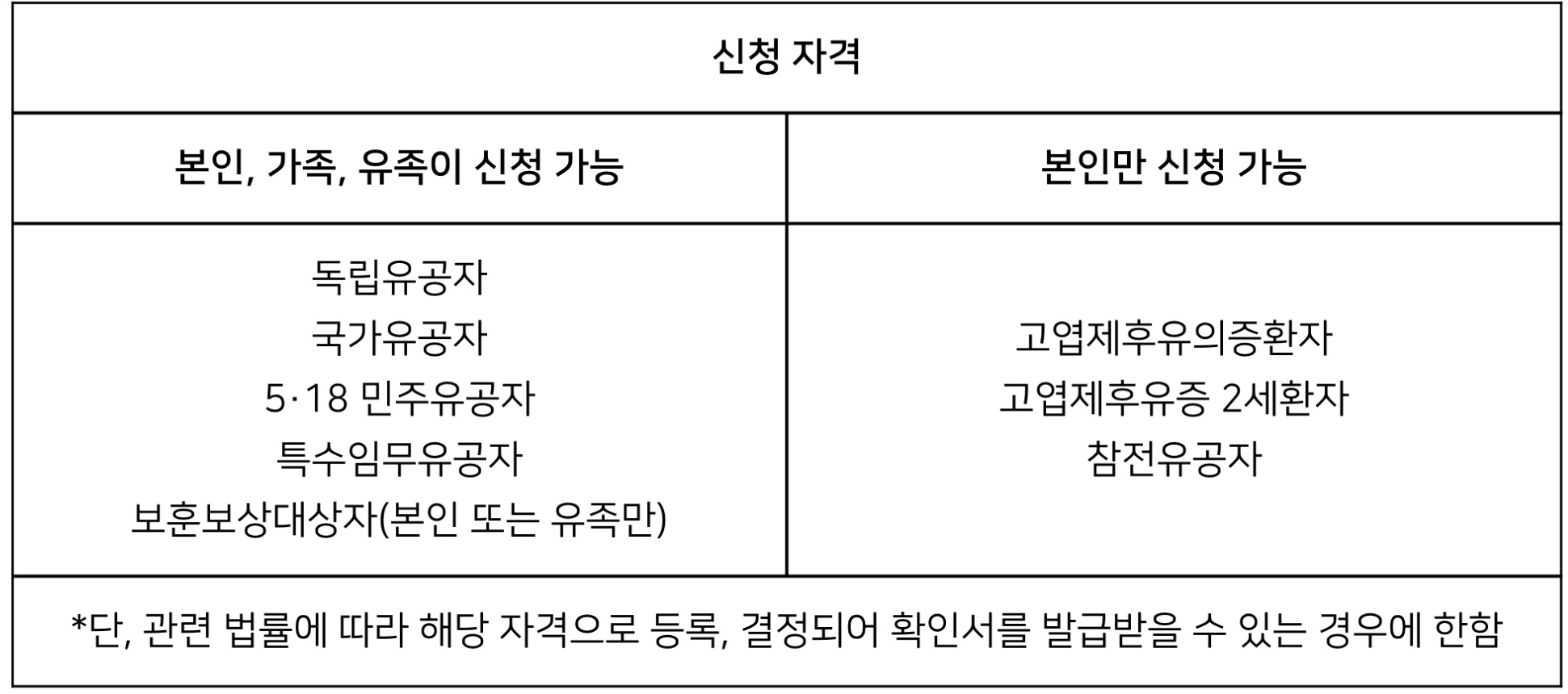 ✅본인, 가족, 유족이 신청 가능