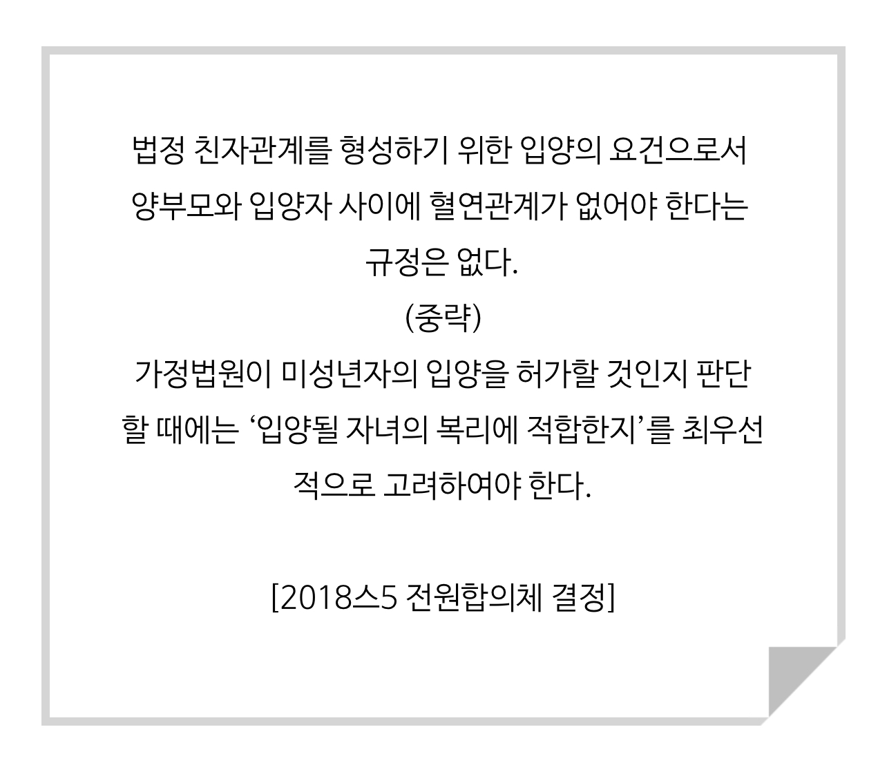 또한, 미성년자 입양 허가 문제를 다룰 때는 ‘입양될 아동의 복리’가 최우선으로 고려되어야 한다고도 보았다고 합니다.