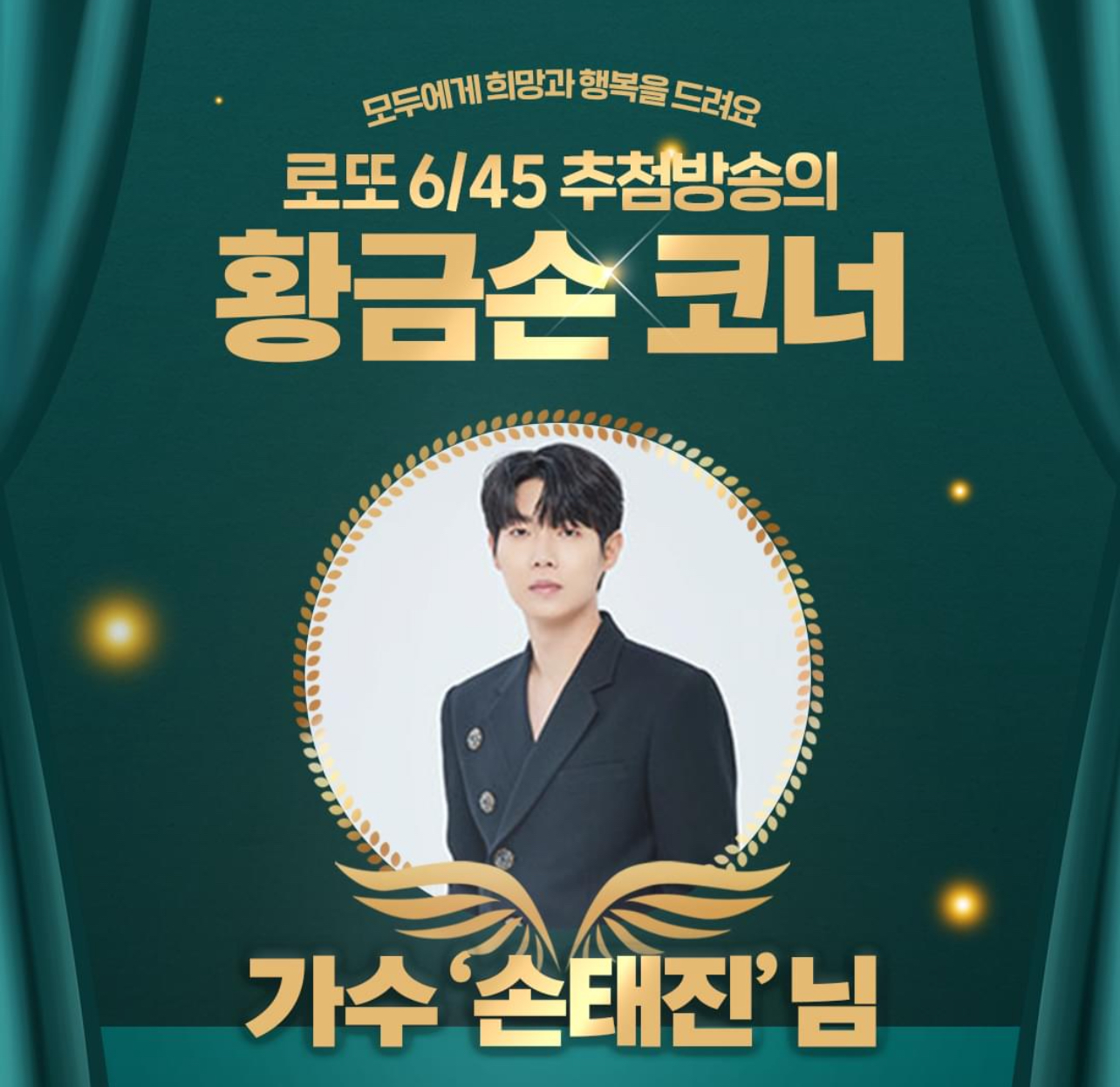 이번 ‘생방송 행복드림 로또 6/45’의 황금손으로는 가수 손태진이 출연한다고 합니다.