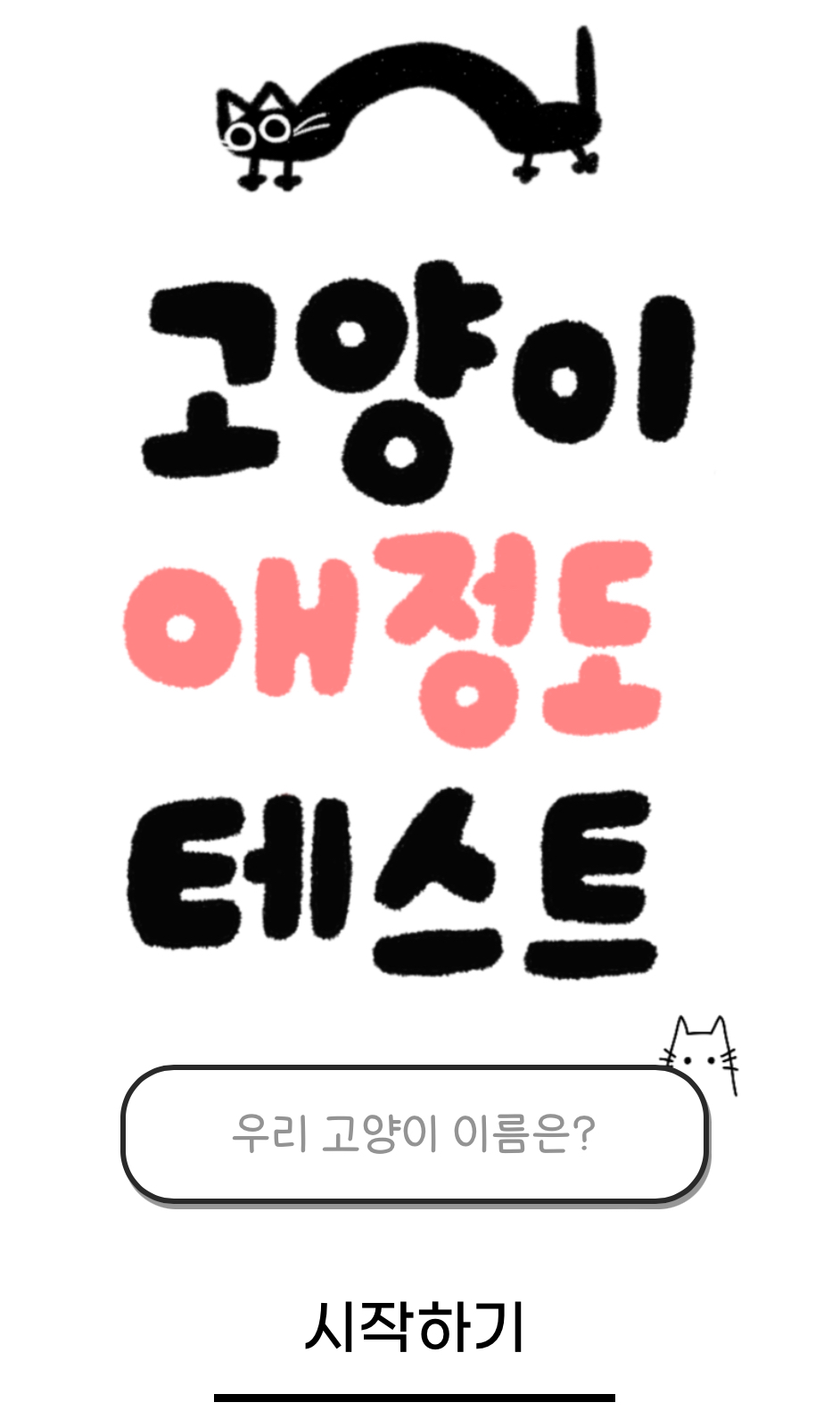 시작에 앞서 우리 고양이 이름은 무엇인지 적고 시작하기를 눌러주시면 됩니다.