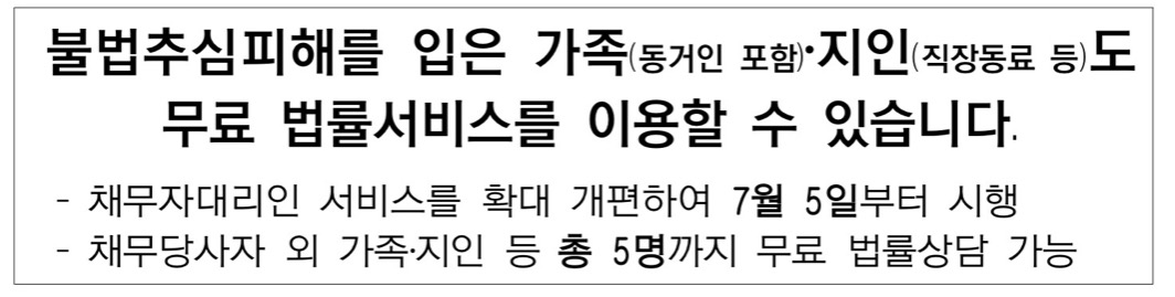 불법추심 피해 가족 지인도 무료 법률 지원 확대