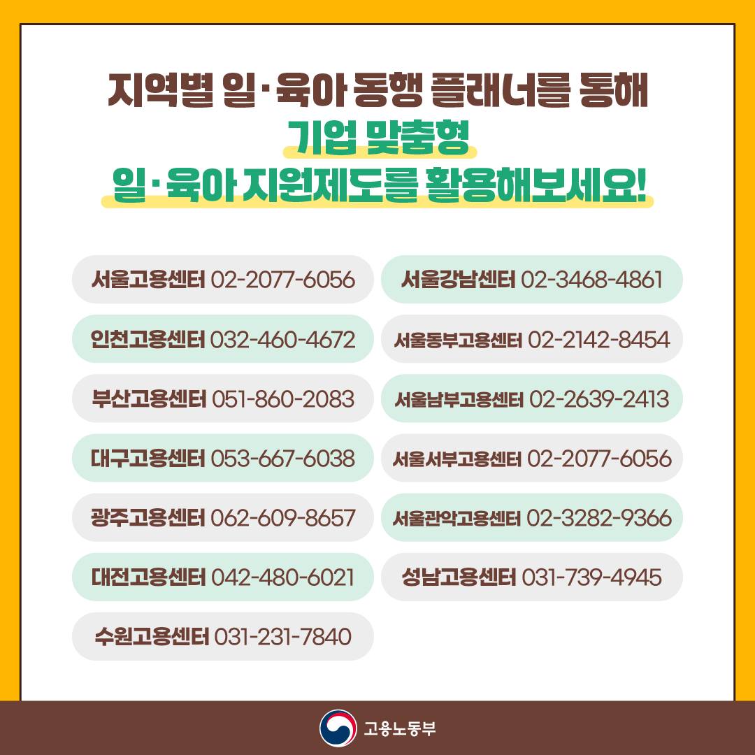 지역별 일•육아 동행 플래너를 통해 기업 맞춤형 일•육아 지원제도를 활용해 보시길 바랍니다.