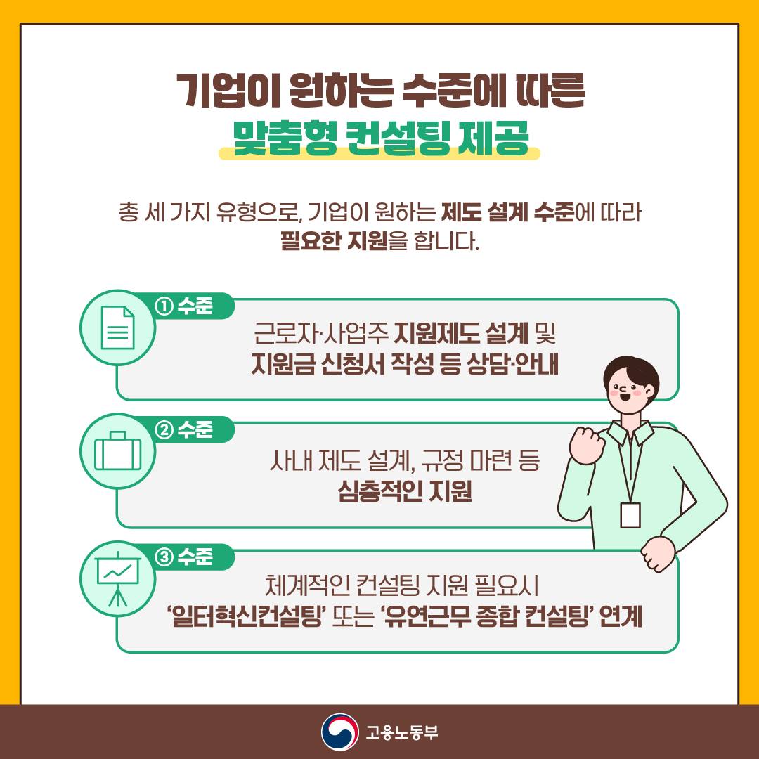 ③ 수준 : 체계적인 컨설팅 지원 필요시 '일터혁신컨설팅' 또는 '유연근무 종합 컨설팅' 연계
