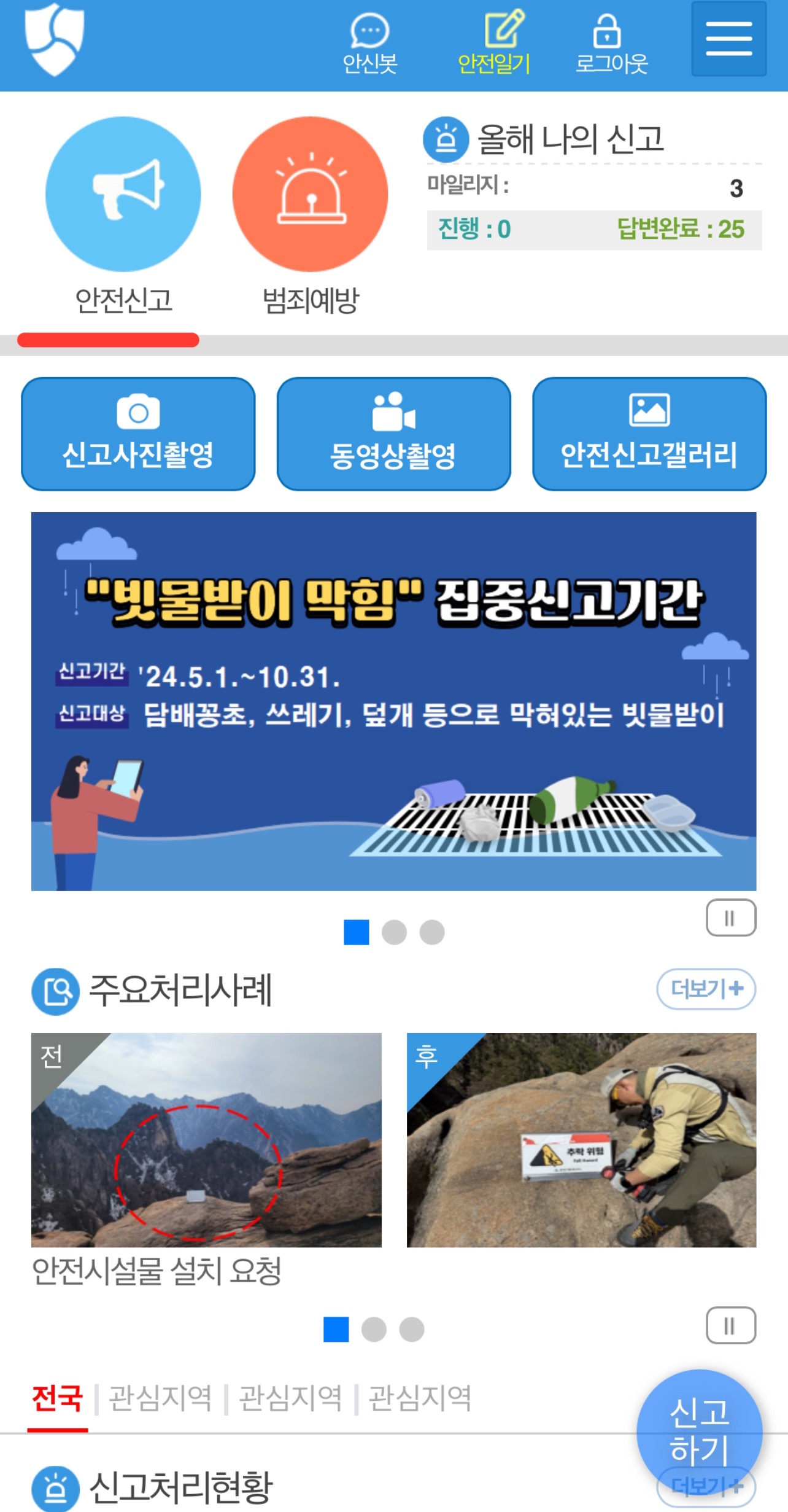 2. 안전신고 또는 신고하기 클릭