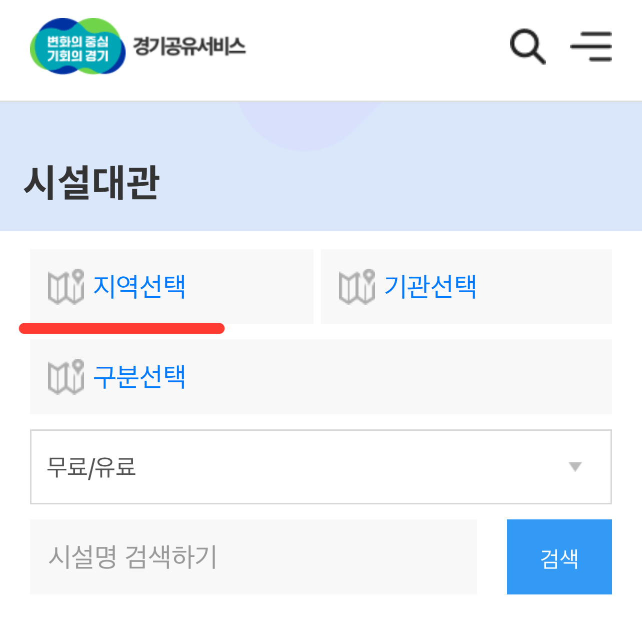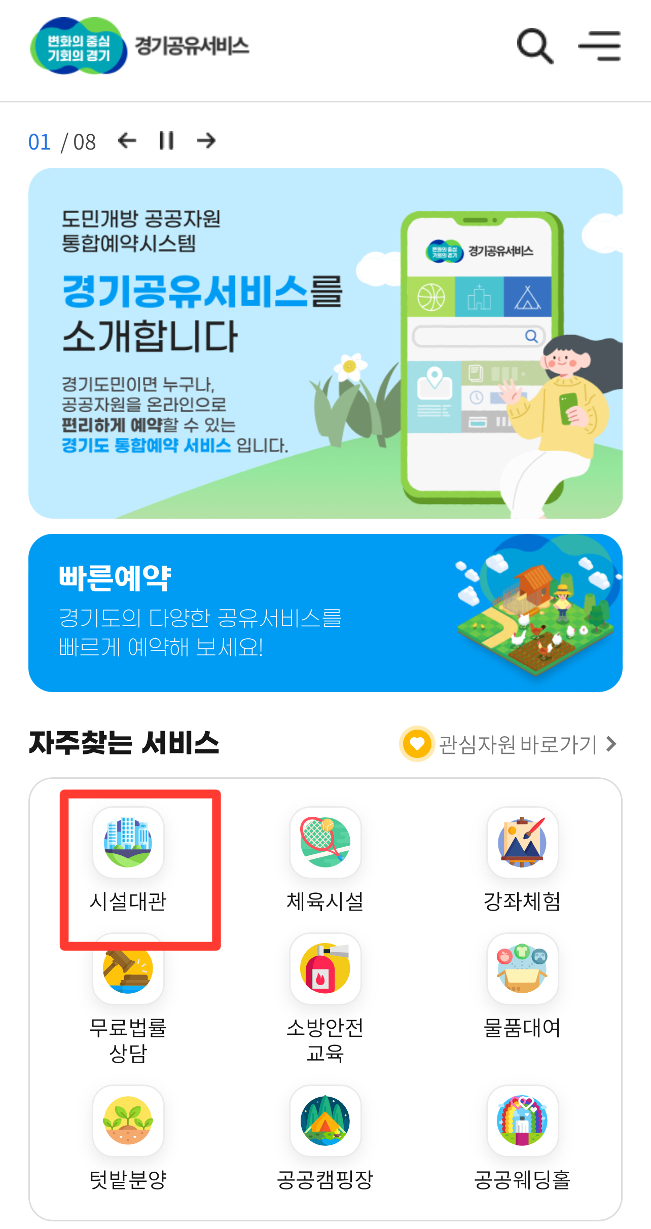 1. 경기공유서비스(https://share.gg.go.kr/index) 홈페이지 접속
