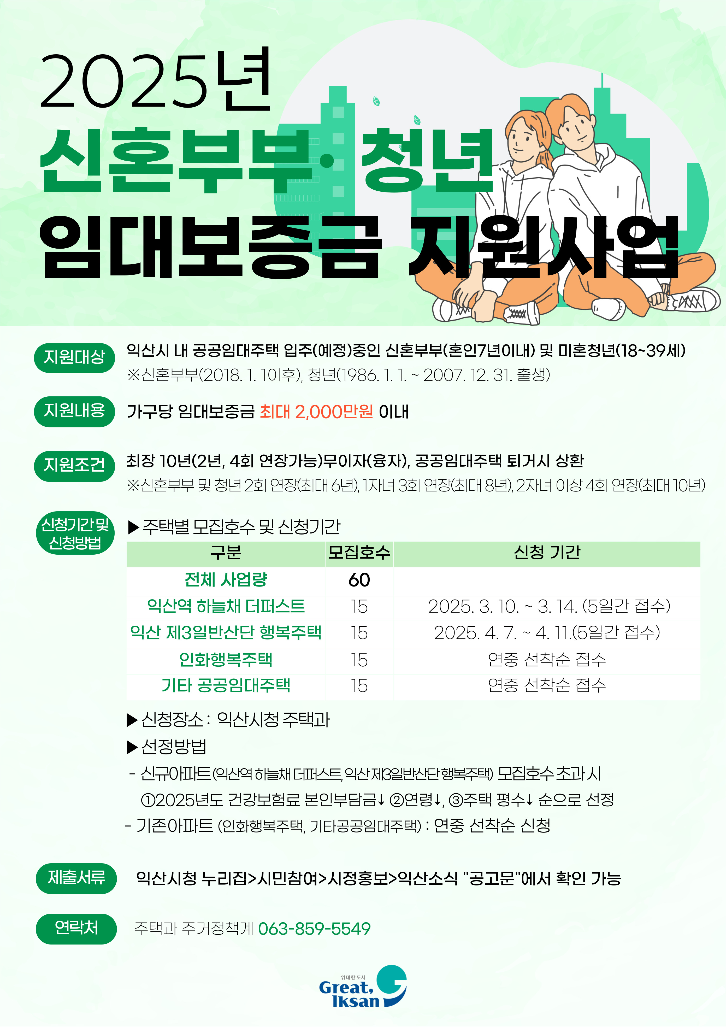 보다 더욱 자세한 내용은 익산시 누리집 공고문을 참고하거나 주택과(063-859-5549)로 전화하면 안내받을 수 있습니다.