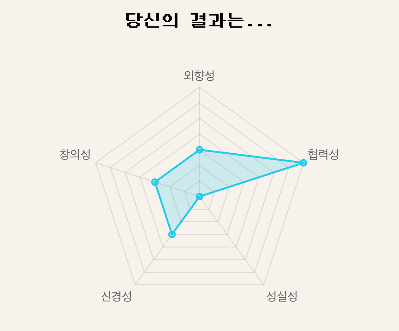 당신은 다른 사람들을 잘 이해하고 공감하는 성향이 있어요. 협력적이고 타인을 도와주는 것을 좋아하며, 사람들과의 관계를 중요시하는 당신은 진정한 팀플레이어입니다!