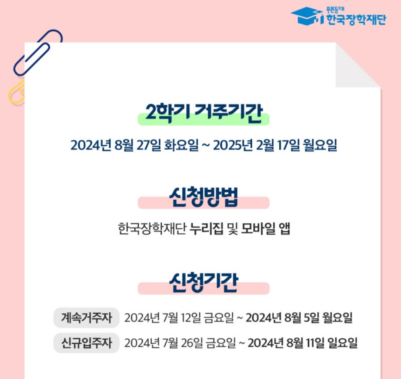 ➡️신규입주자 : 2024년 7월 26일 금요일 ~ 2024년 8월 11일 일요일