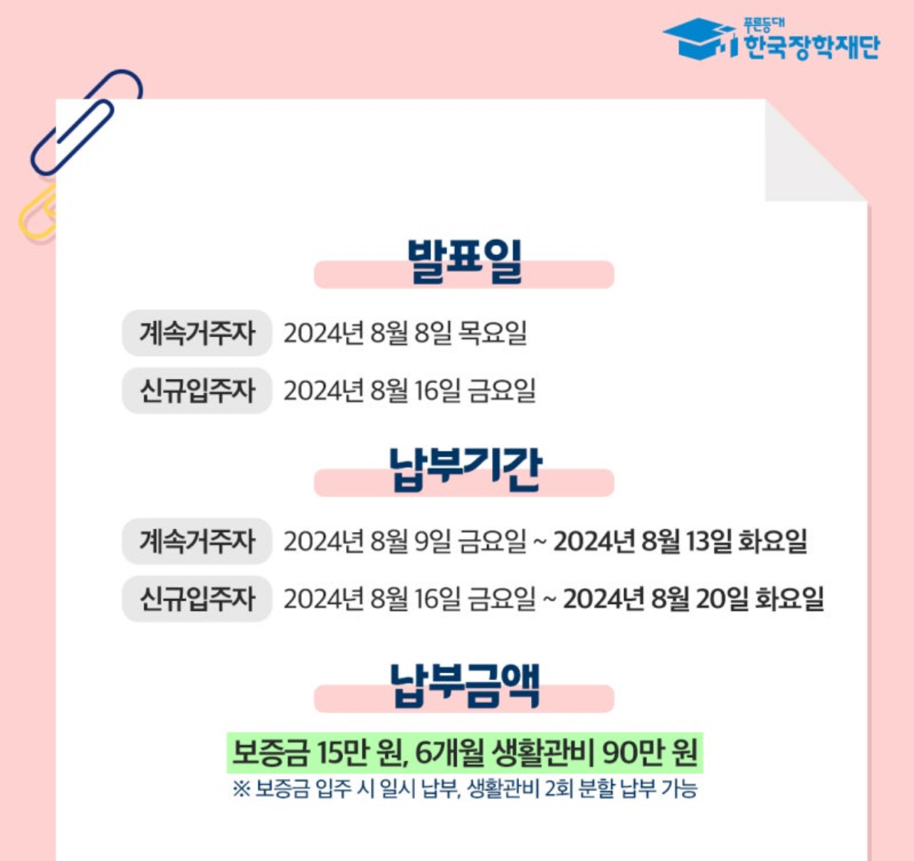 ➡️신규입주자 : 2024년 8월 16일 금요일 ~ 2024년 8월 20일 화요일