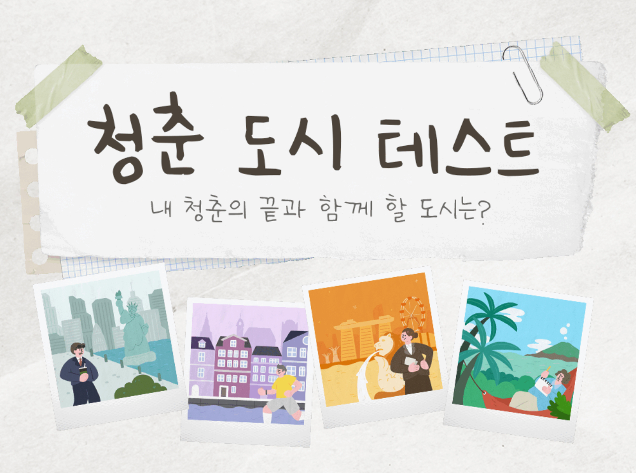 내 청춘의 끝과 함께 할 도시를 찾아보는 ‘청춘 도시 테스트’가 있어서 여러분들께 소개드리려고 합니다.