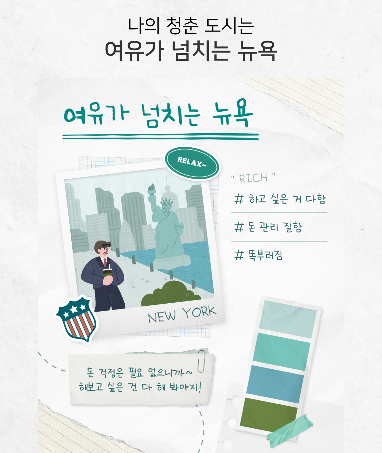 나의 청춘 도시는 여유가 넘치는 뉴욕이 나왔습니다.