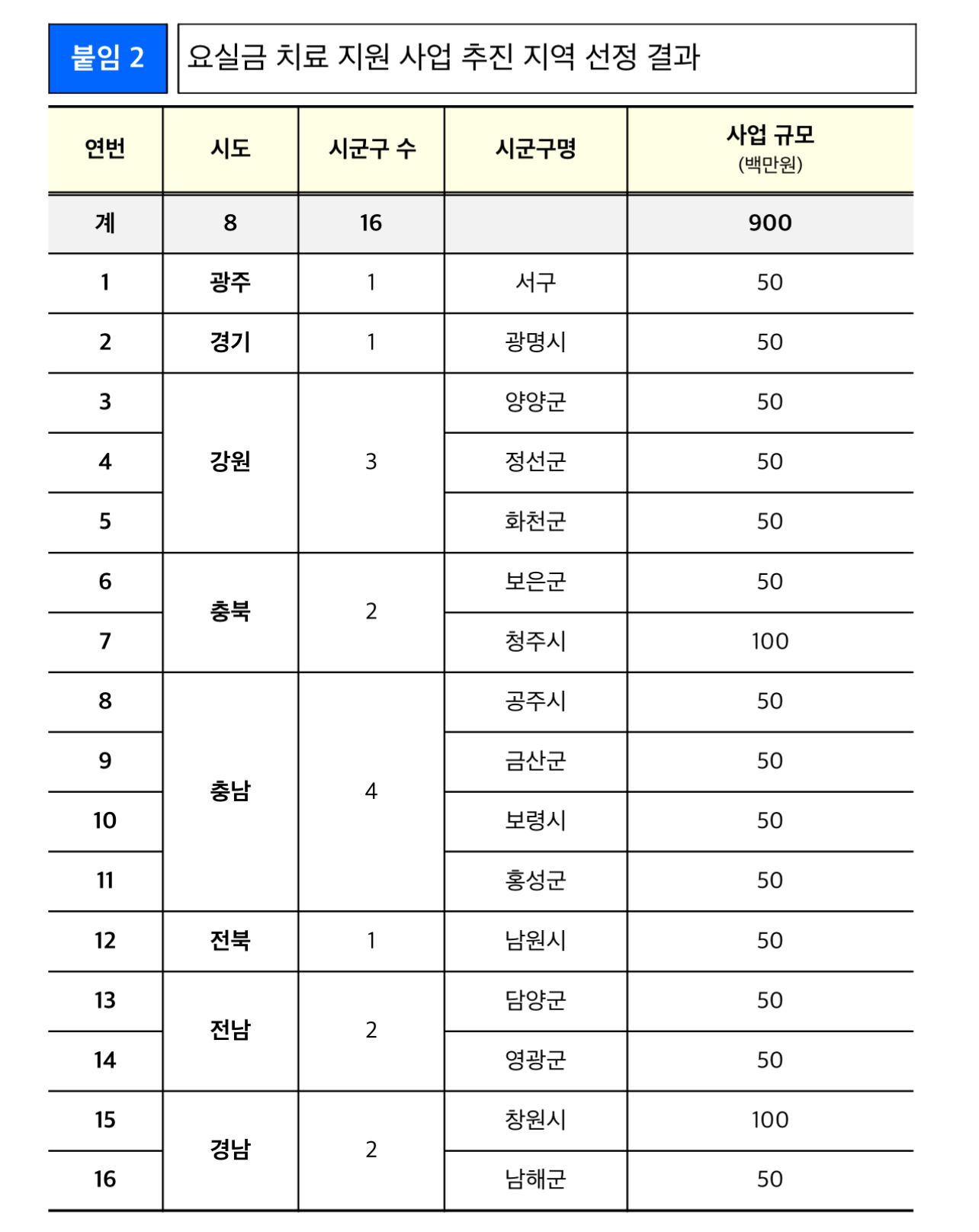 보건복지부 염민섭 노인정책관은 “어르신들의 건강 및 삶의 질 개선을 위해 요실금 치료 지원 사업에 관심을 가지고 지원해 주신 16개 시·군·구에 감사드린다”라며, “보다 많은 어르신들이 적기에 요실금을 치료받아, 건강하고 행복한 삶을 유지하실 수 있도록 2차 공모에도 각 지방자치단체의 적극적인 참여를 부탁드린다”라고 당부했습니다.