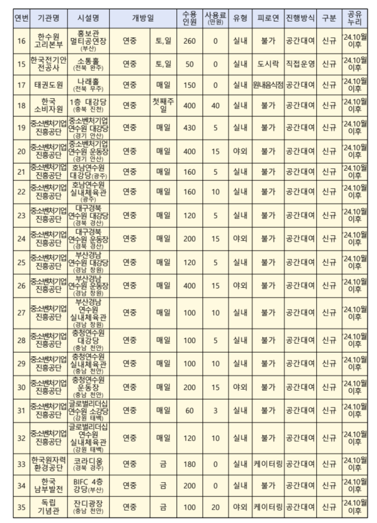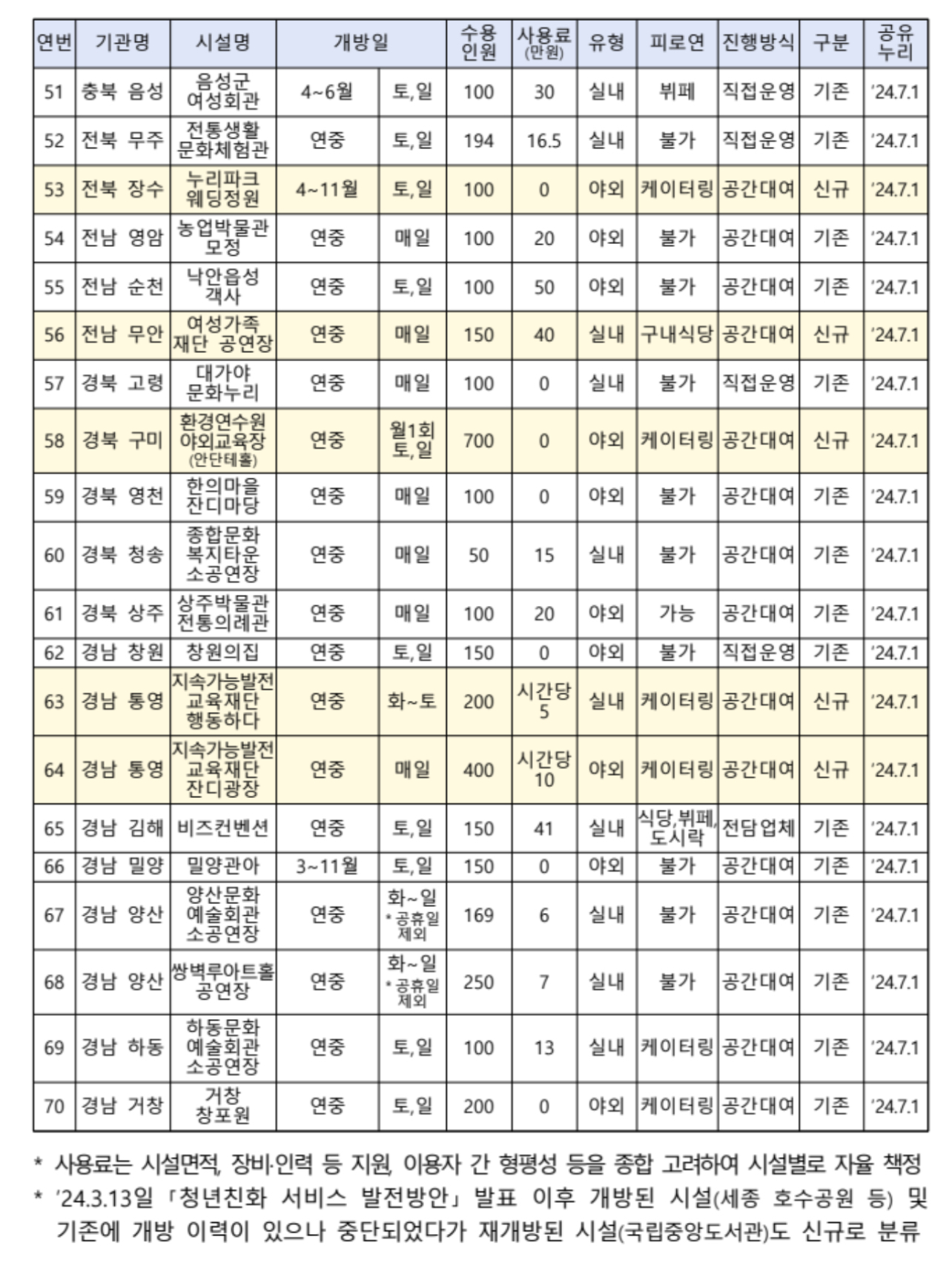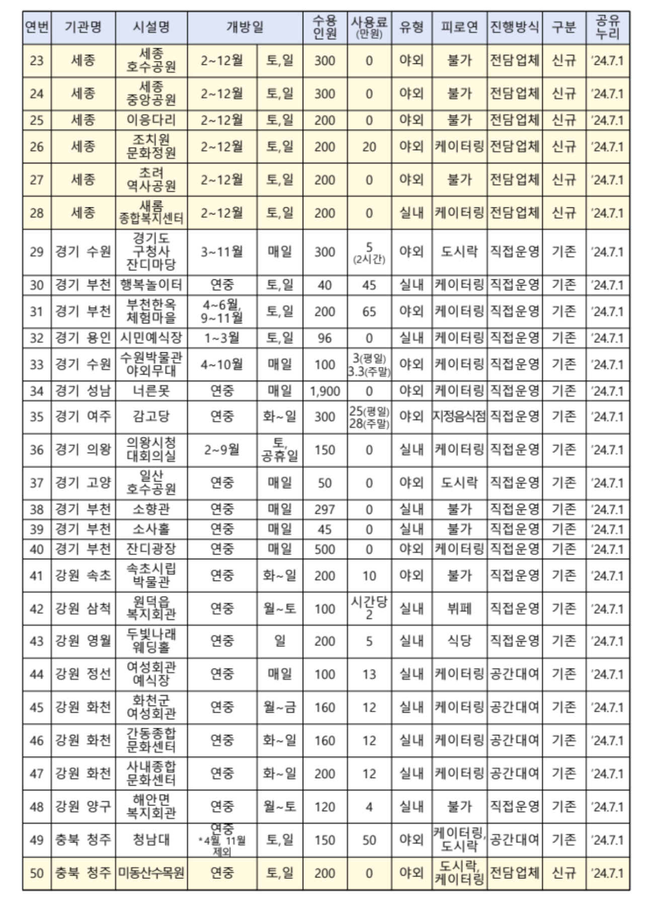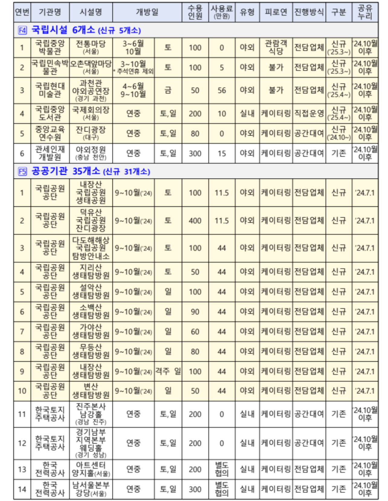 오는 2024년 7월 1일부터 국립공원과 지자체 시설 등 80개소에 대한 검색·예약서비스를 제공하고 추후 공공기관 시설 등 60여 개 공간도 추가할 예정이라고 합니다.
