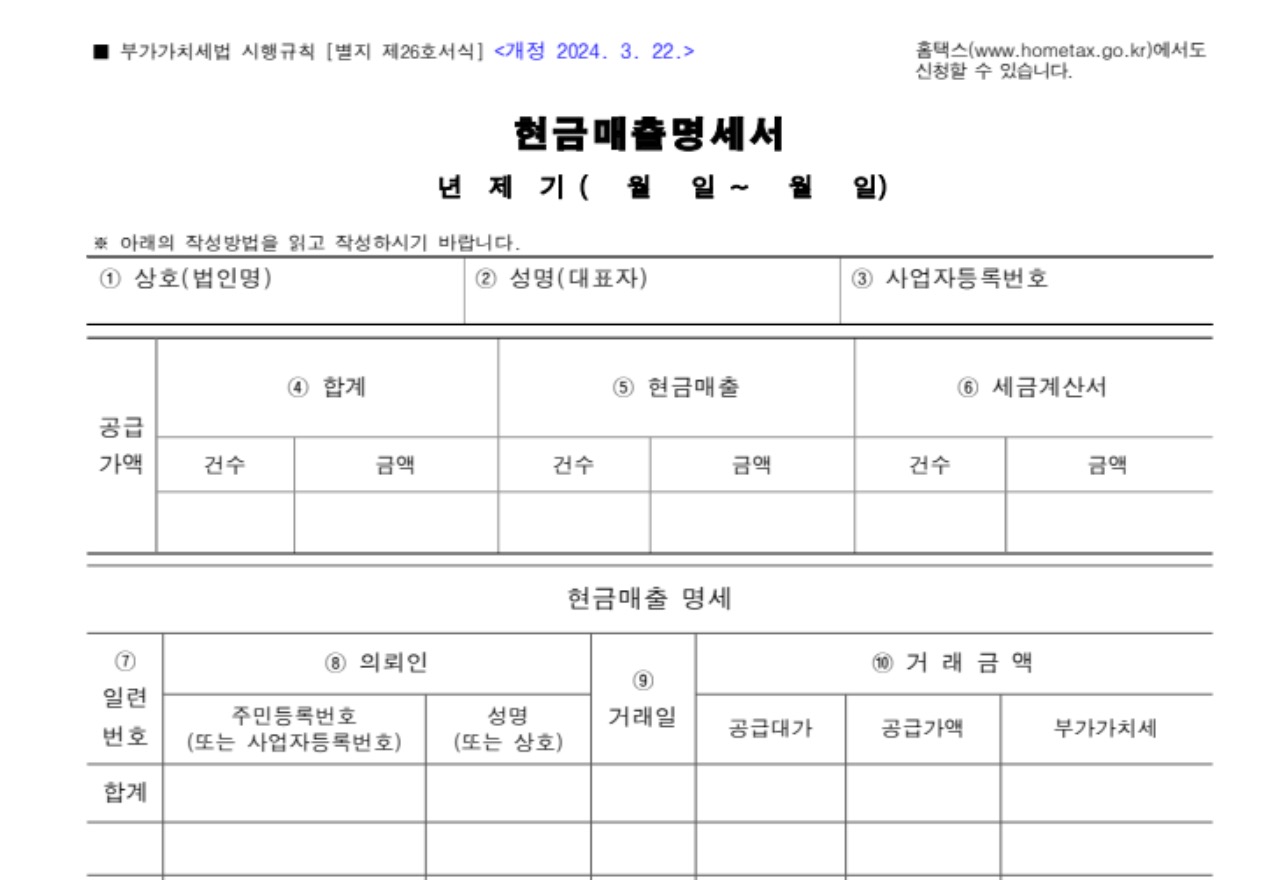 현금매출명세서