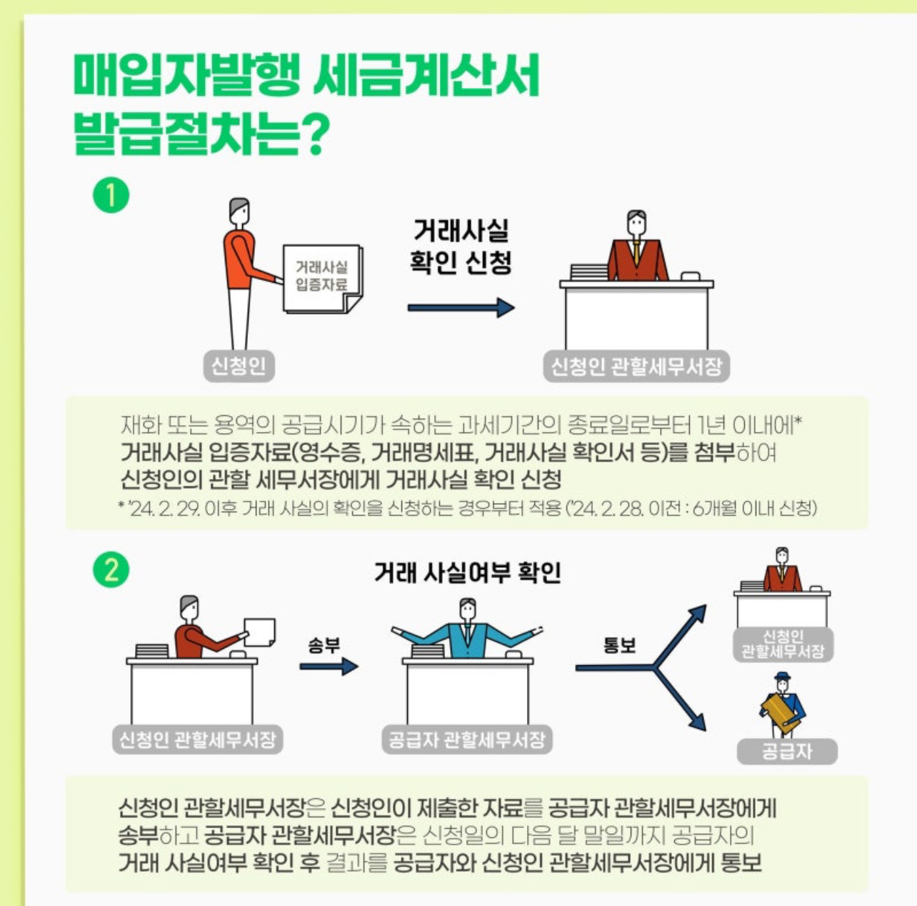• 세금계산서 발급의무가 있는 사업자가 재화 또는 용역을 공급하고 그에 대한 세금계산서를 발급하지 않는 경우 재화 또는 용역을 공급받은 사업자(매입자)가 관할세무서장의 확인을 받아 세금계산서를 발급할 수 있는 제도