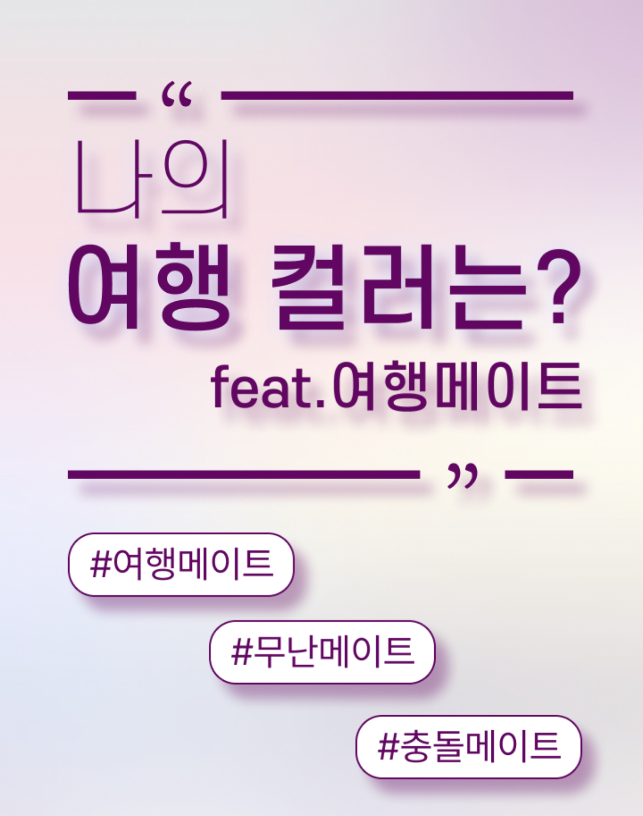 컬러로 보는 나의 여행 스타일 나의 여행 메이트는 누구인지 그리고 나랑 안 맞는 유형은 무엇인지 알아보는 여름 휴가 가기 전에 미리 테스트해보는 푸망에서 나온 ‘나의 여행 컬러 테스트’를 소개드리겠습니다.