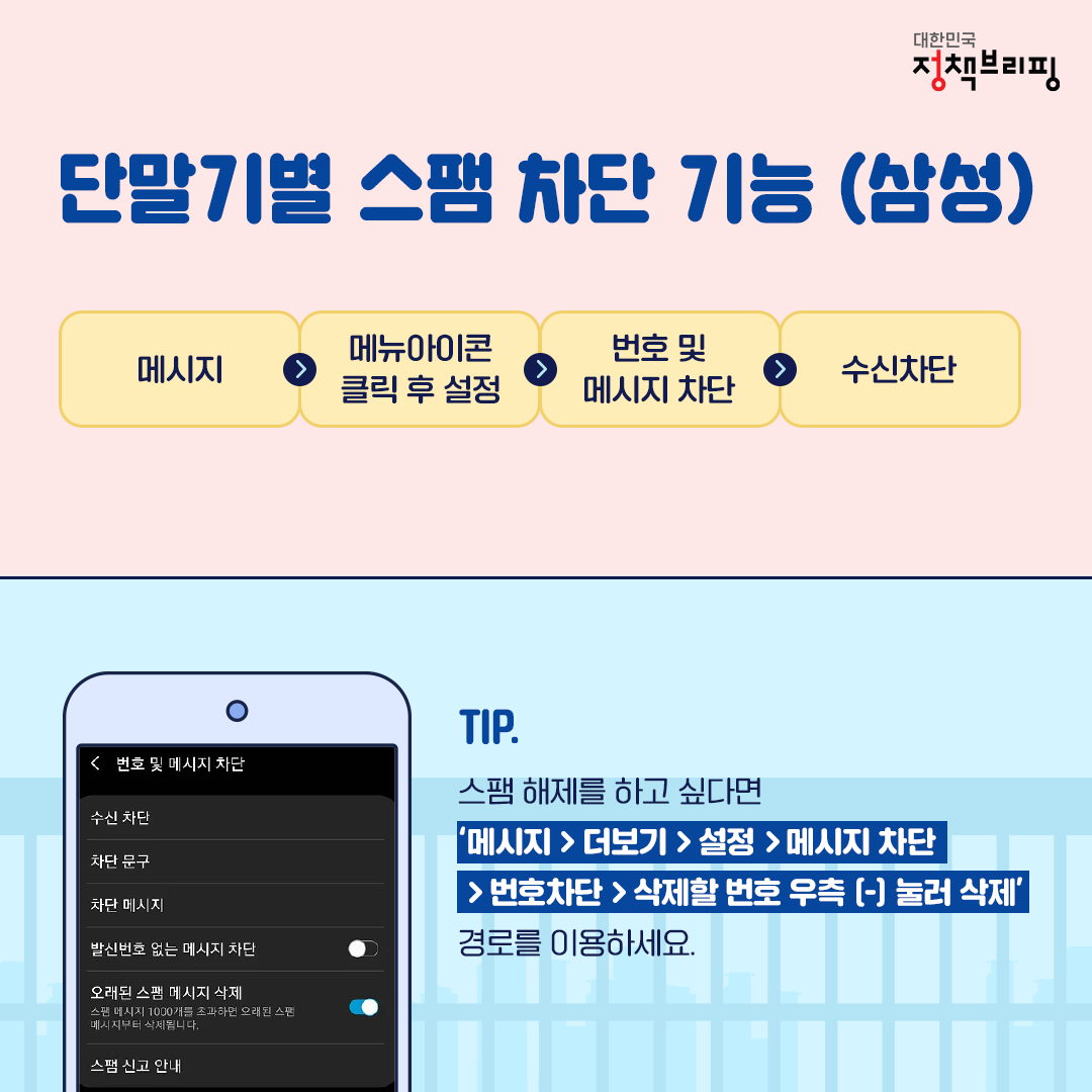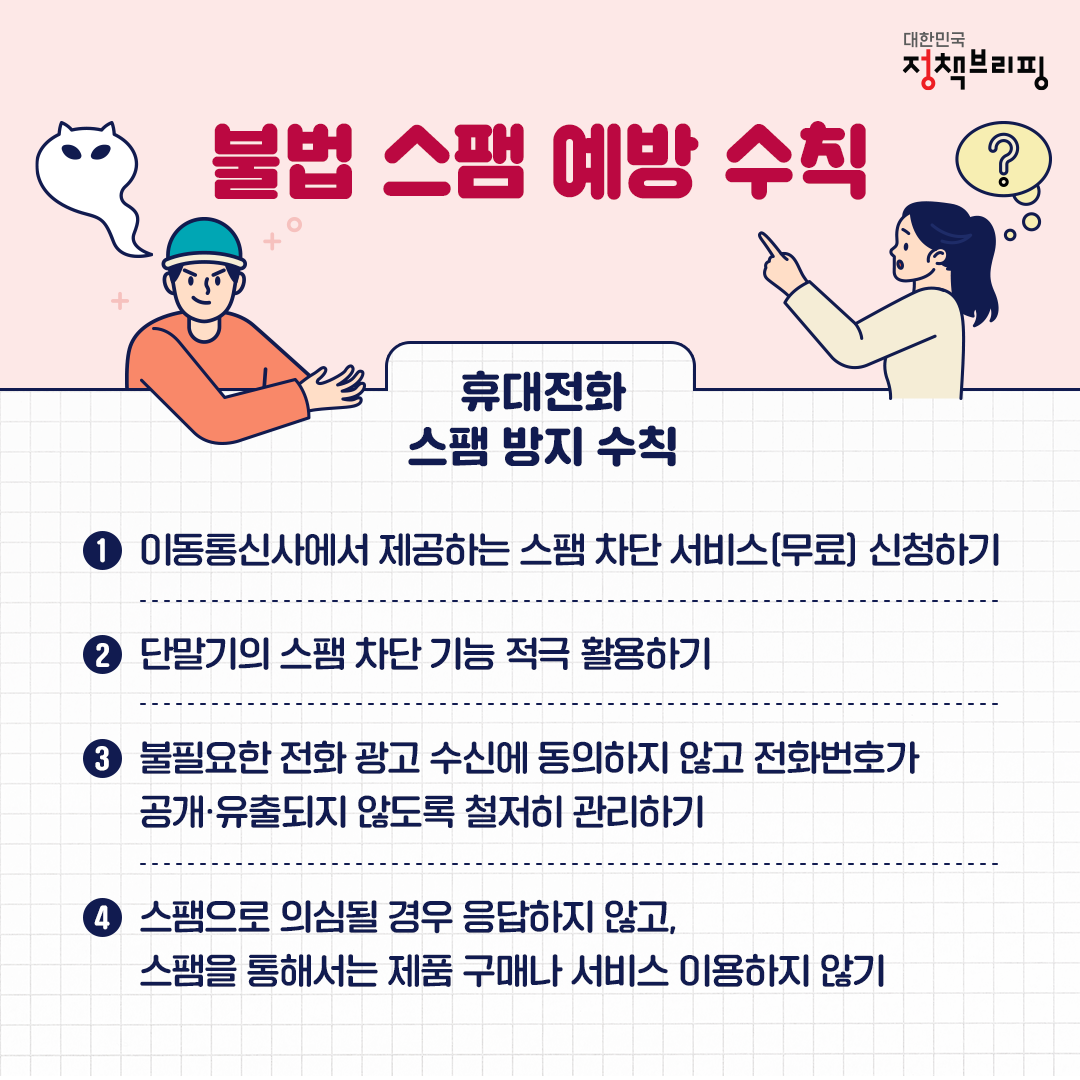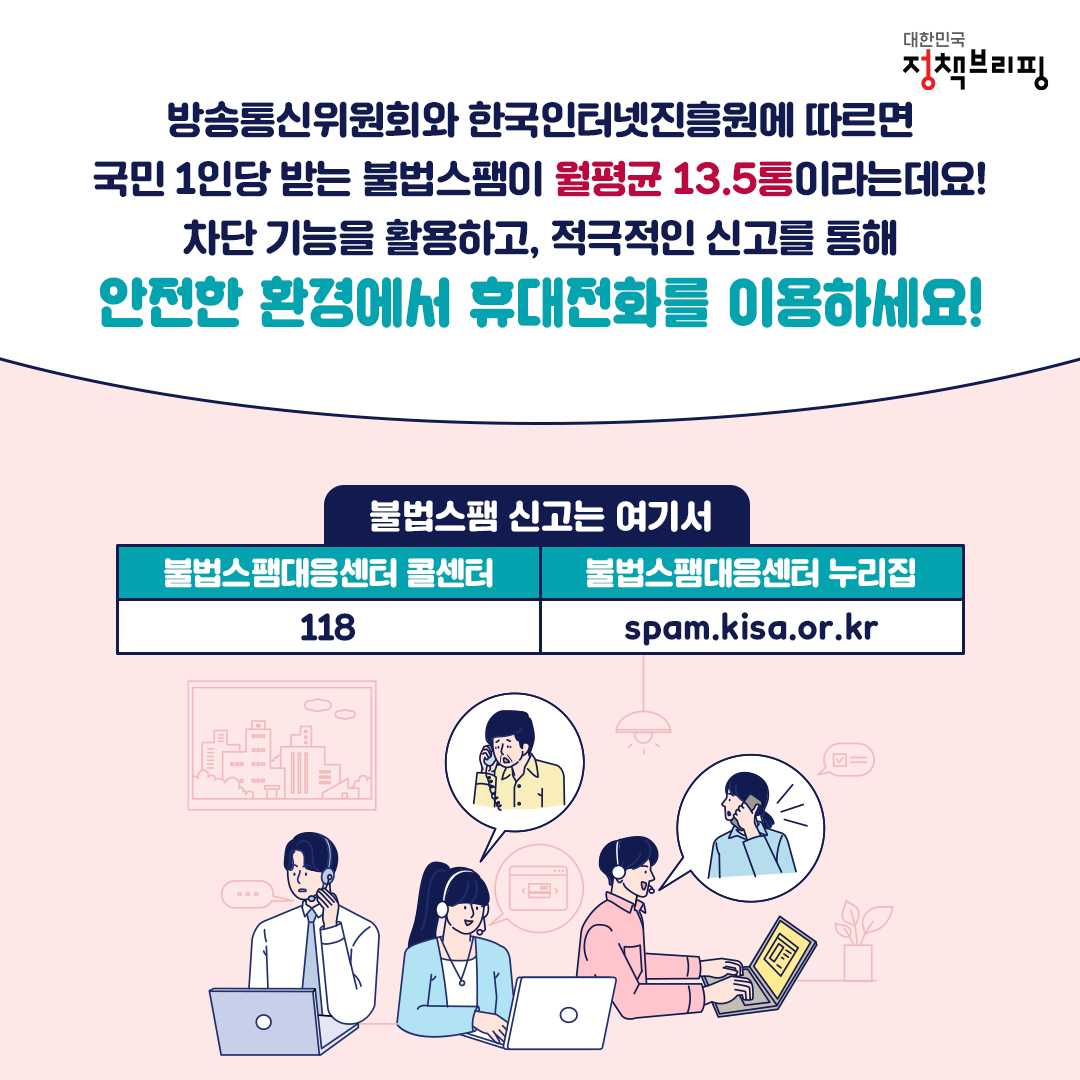 스팸 차단 기능을 활용하고 적극적인 신고를 통해 안전한 환경에서 휴대전화를 이용하시길 바랍니다.