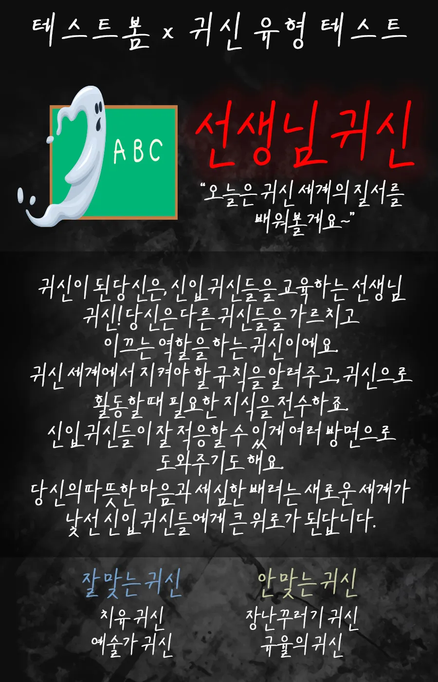 내가 귀신이 된다면, 어떤 귀신이 될지 알아보는 테스트봄에서 나온 ‘귀신 유형 테스트’를 소개드리겠습니다.
